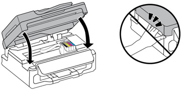 Caution: Do not move the print head by hand; otherwise, you may damage your product. Do not touch the flat white cable inside the printer.
